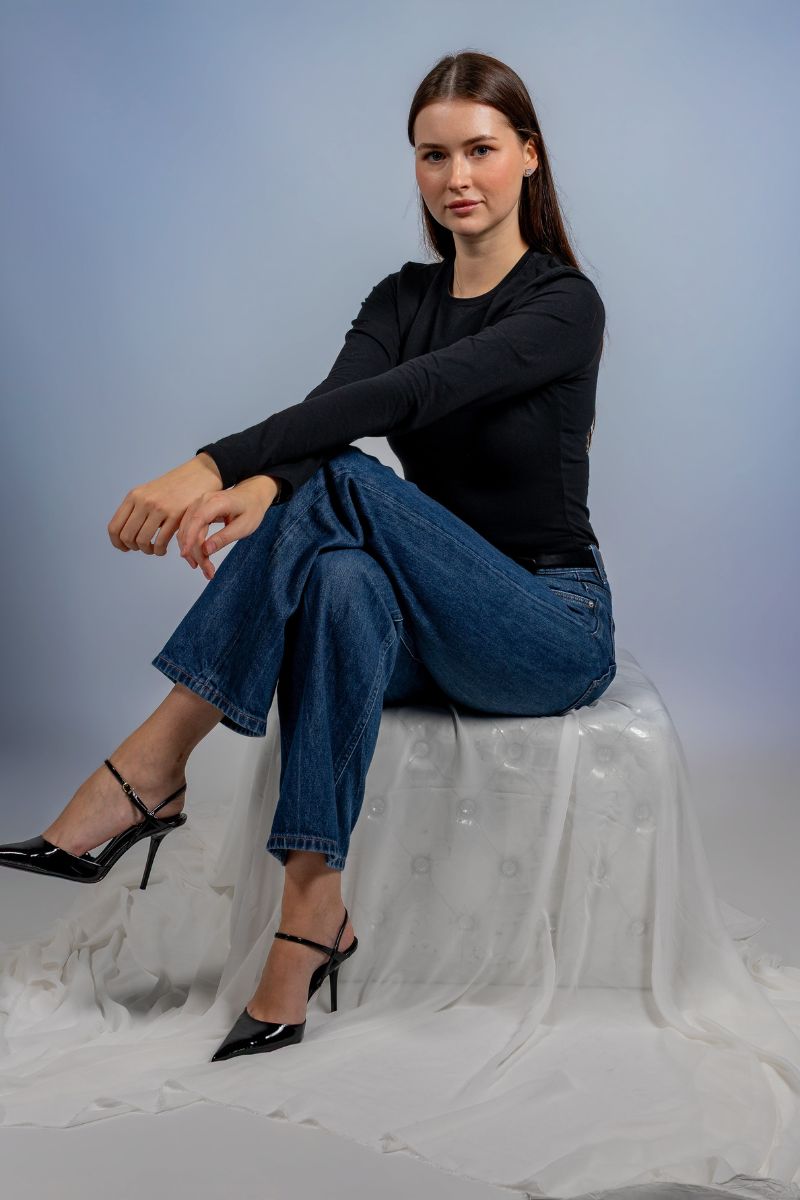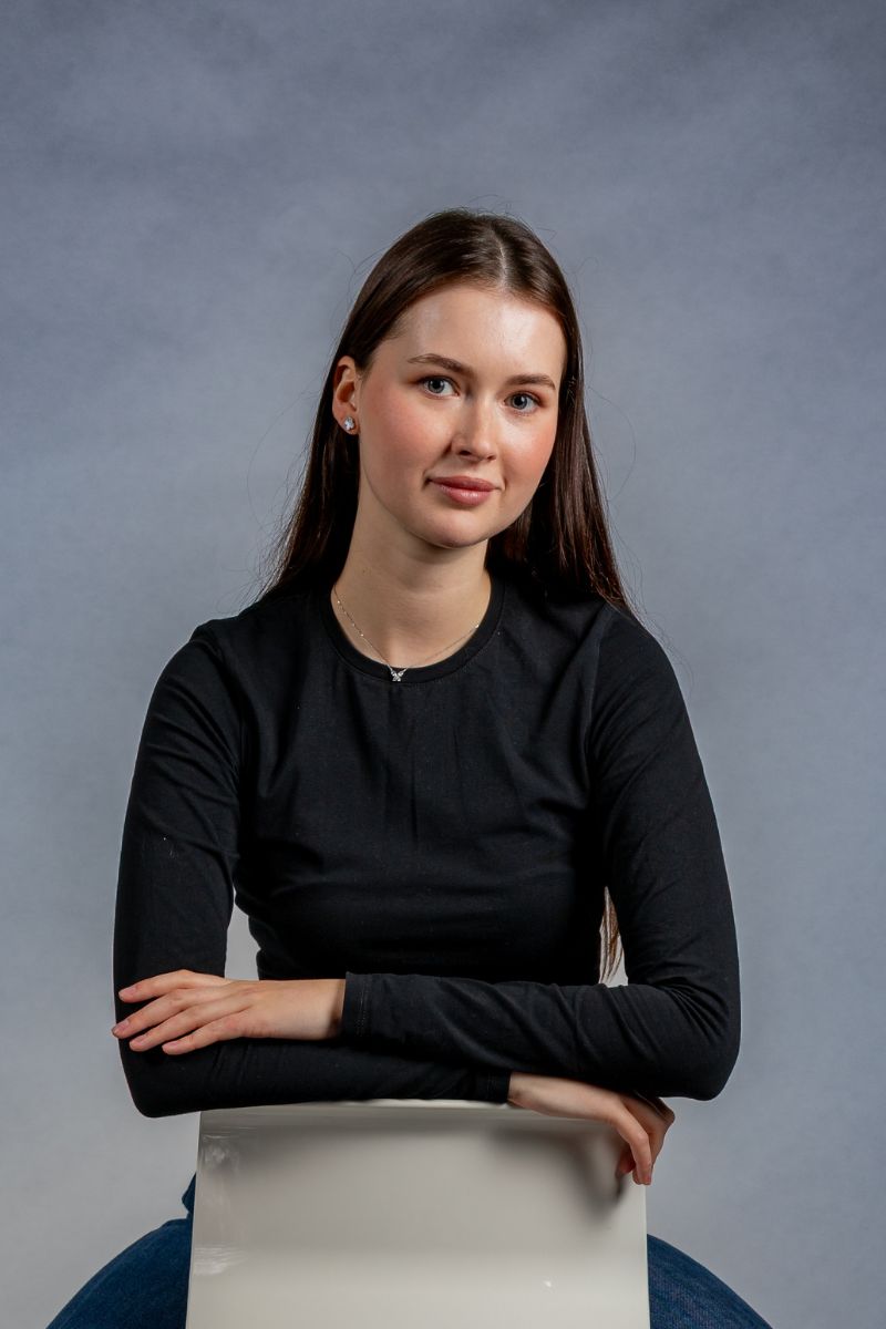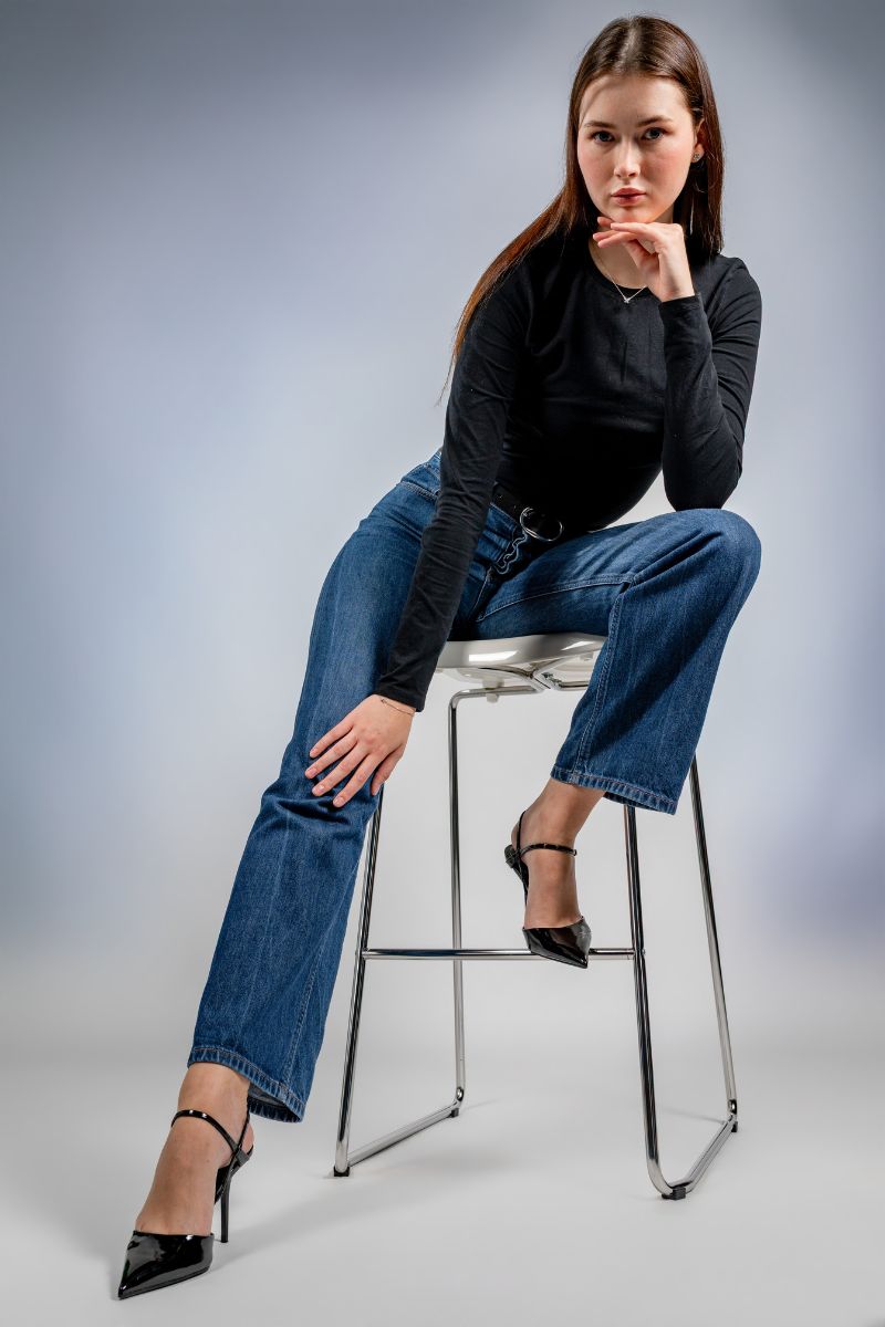• Locker sitzendes Portrait einer jungen Frau bei einem Portraitshooting in Oldenburg.